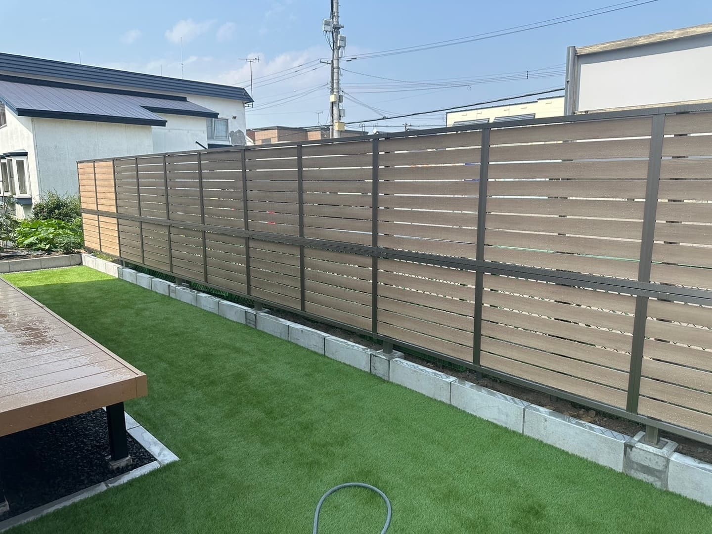 裏庭にフェンスを設置することで、【通行人などに室内を見られるのを防止】【BBQをしているところを見られたくない】【お隣の方や裏の方に迷惑をかけたくない】などの効果があります。近年はフェンスの需要が大変増えており、弊社では色々な高さやデザイン(色や形)のものなど品揃えを豊富に取り揃えております。